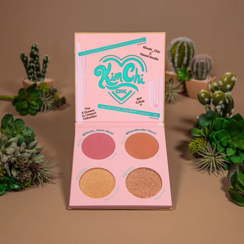 Esta increíble colaboración entre KimChi y Naomi Smalls une dos reinas del maquillaje para traerte una paleta llena de tonos cálidos y radiantes, pensados para todo tipo de piel.
